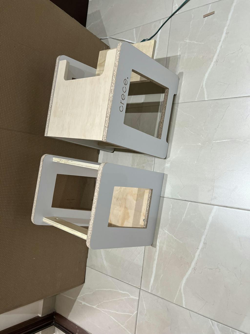 Nuestra torre de aprendizaje multiusos está inspirada en la metodología Montessori, se puede transformar de manera fácil y sencilla en un pizarrón y en un lindo escritorio.